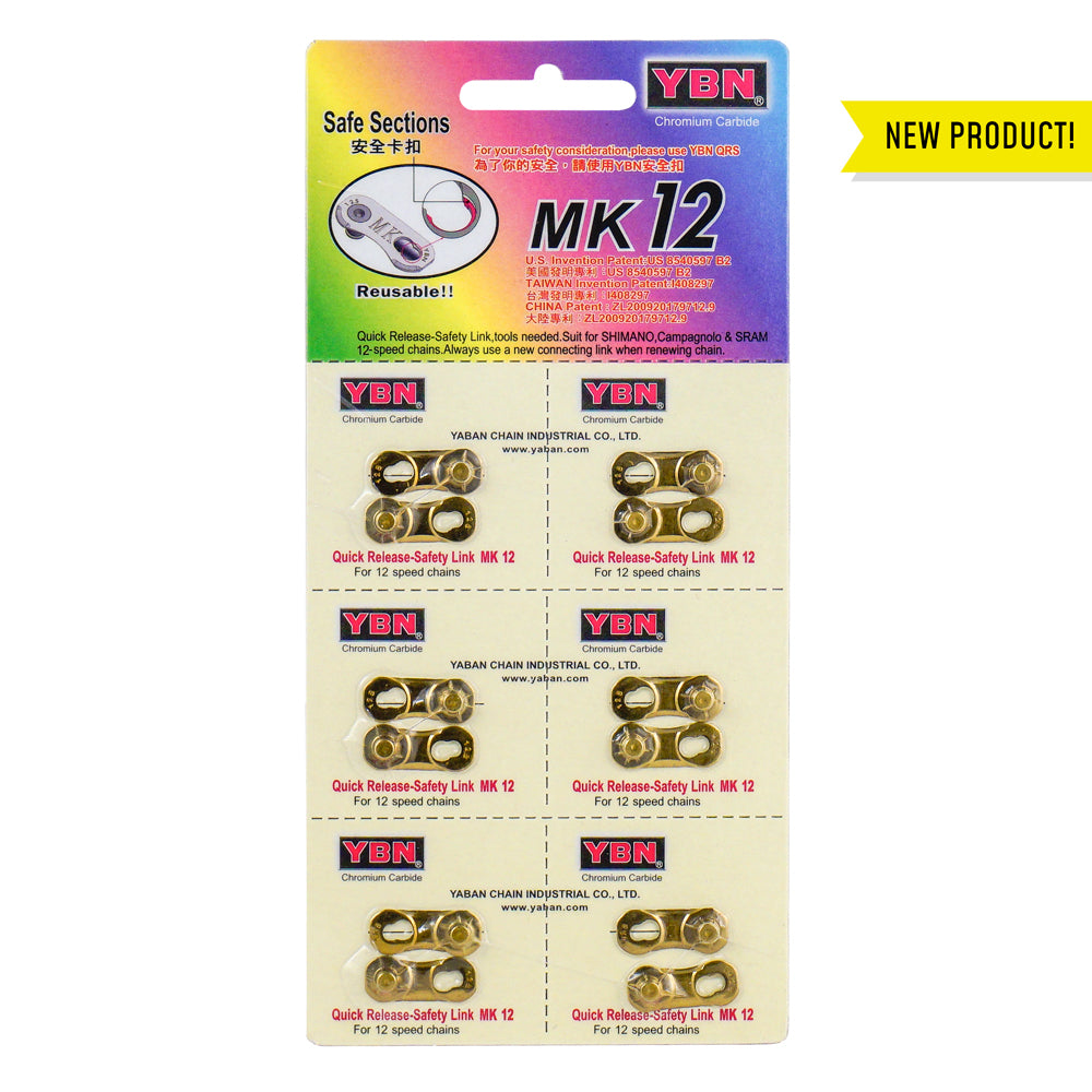 Tough little link. The QRS MK12 master link offers rock-solid dependability in a design that can be reused five times. With a pin power exceeding 350kgf and safety sections to prevent false release, it's no wonder YBN has a patent on the design. Add in chromium carbide hardening for longevity and this link punches above its weight class.